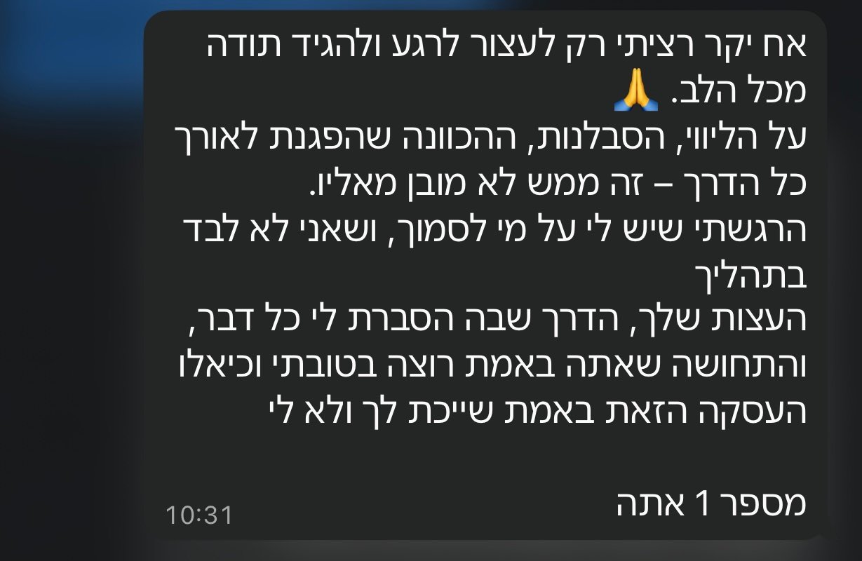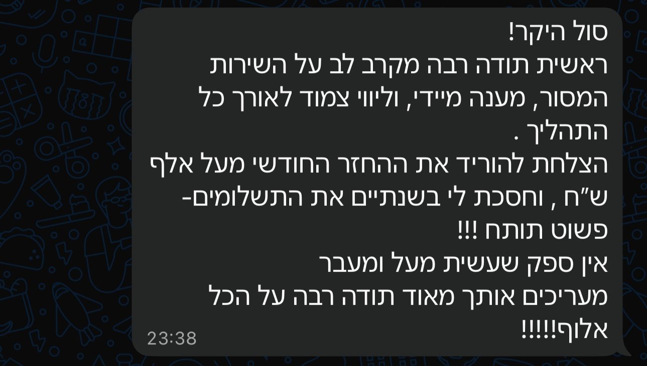 זמינות אמיתית, ליווי אישי, תשובות ברורות – בלי מוקדים ובלי נציגים באמצע.